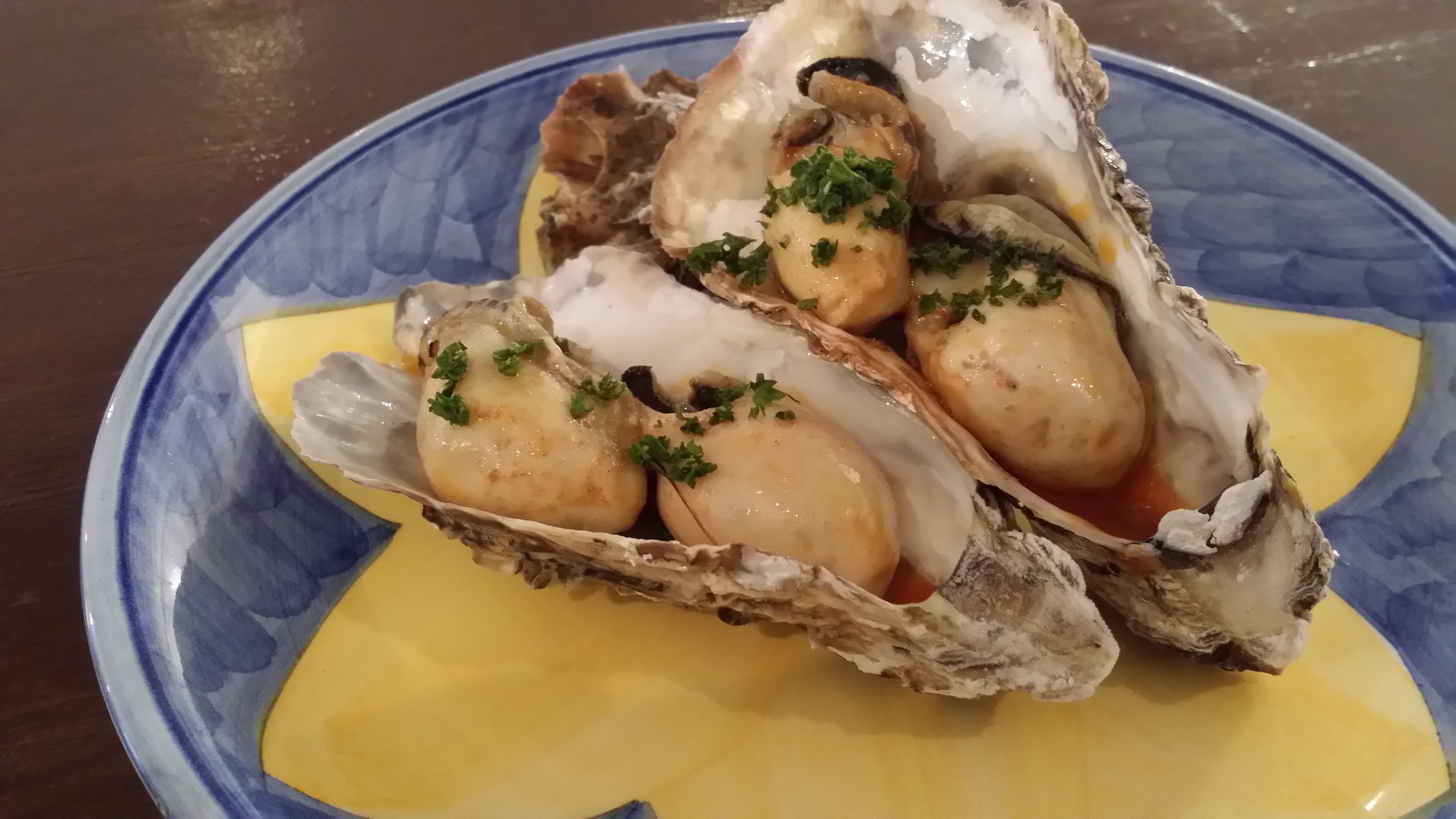 軽くボイルした牡蠣に唐辛子・パプリカ・ビネガーがきいたオイルに漬けたエスカベチェは白ワインやカヴァとの相性ぴったりです。
